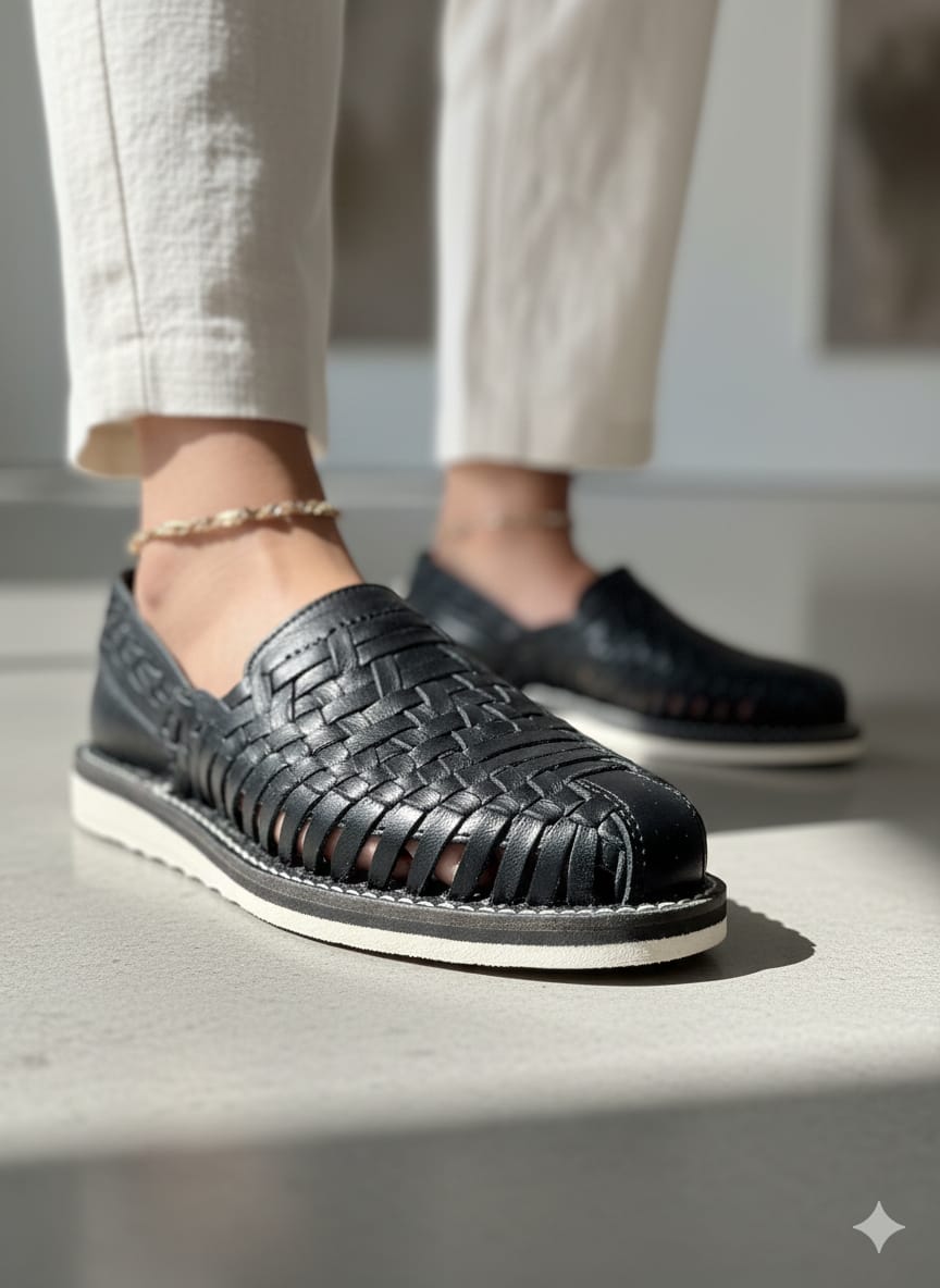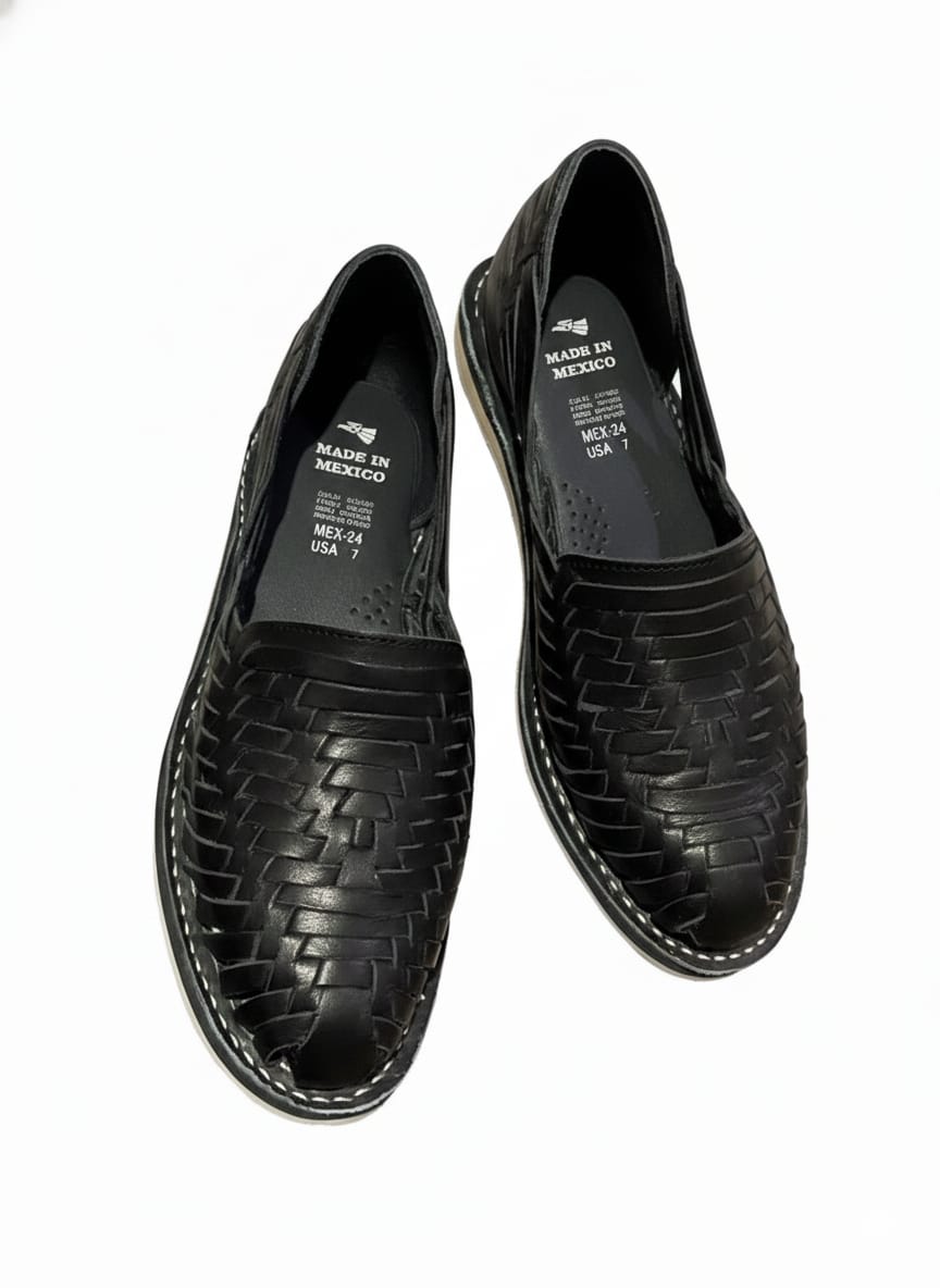 Huaraches Artesanales Color Negro tejido De Piso Mujer De Piel Sahuayo Michoacan mayoreo fabricante de calzado zapatos taller maquilador